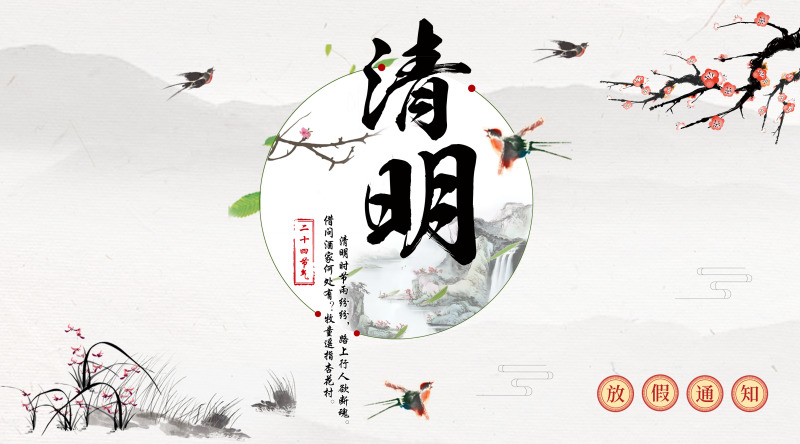 根據(jù)國(guó)務(wù)院辦公廳《關(guān)于2019年部分節(jié)假日安排的通知》,結(jié)合我公司實(shí)際情況,經(jīng)公司研究決定,現(xiàn)將公司2019年清明節(jié)放假有關(guān)事項(xiàng)通知如下: